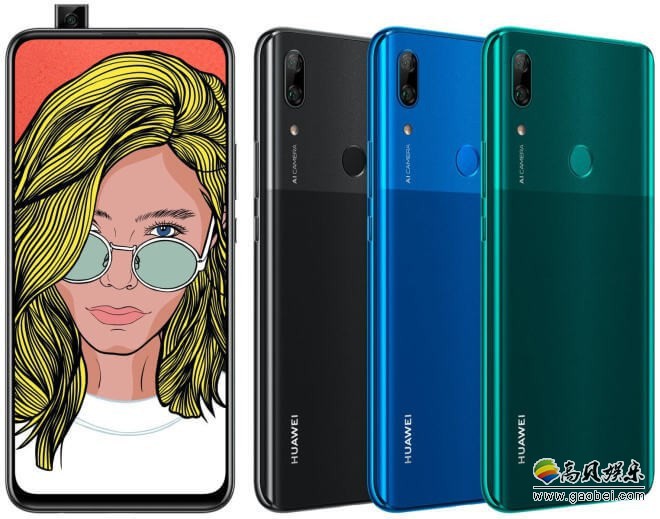 这款手机名为华为P Smart Z,具有6.59英寸的大屏幕,周围边框极窄,该机采用弹出式前置摄像头,规格为1600万像素。后置双摄像头,由一个1600万像素主摄像头和一个200万像素的深度传感器组成。