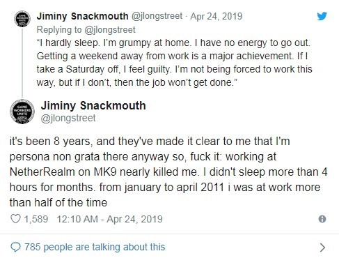 此外,还有许多NetherRealm前员工也曝光了长期的加班情况。