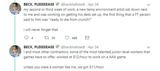 曾是《不义联盟2》的概念画师的Beck Hallstedt,表示NetherRealm和Epic、Telltale等工作室一样,严重依赖临时工。工作环境差,待遇低,却需要高强度工作。