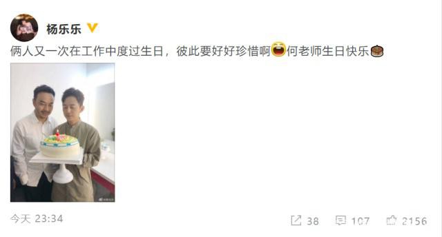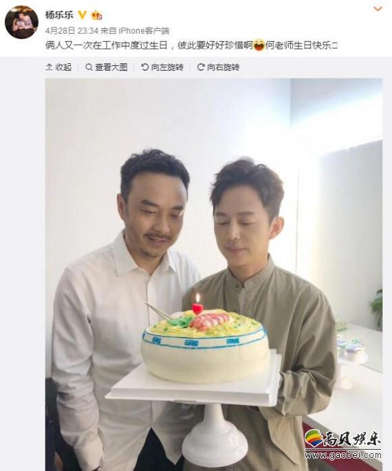 4月28日晚,汪涵妻子杨乐乐在微博晒出一张照片,配文称:“俩人又一次在工作中度过生日,彼此要好好珍惜啊!何老师生日快乐!”