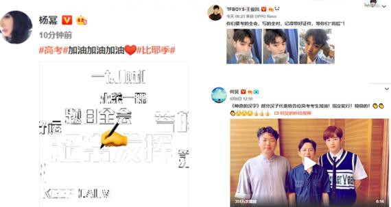 6月7日是2019年高考开始的日子,娱乐圈众位明星杨幂、刘诗诗、何炅、苏有朋、王俊凯、宋茜、邓伦、蔡徐坤、陈立农、朱正廷、韩庚、李荣浩、娜扎、张若昀等众星也送来祝福,祝愿大家都能考出理想的成绩。冲鸭!