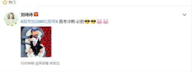刘诗诗首晒儿子照片为考生加油!
