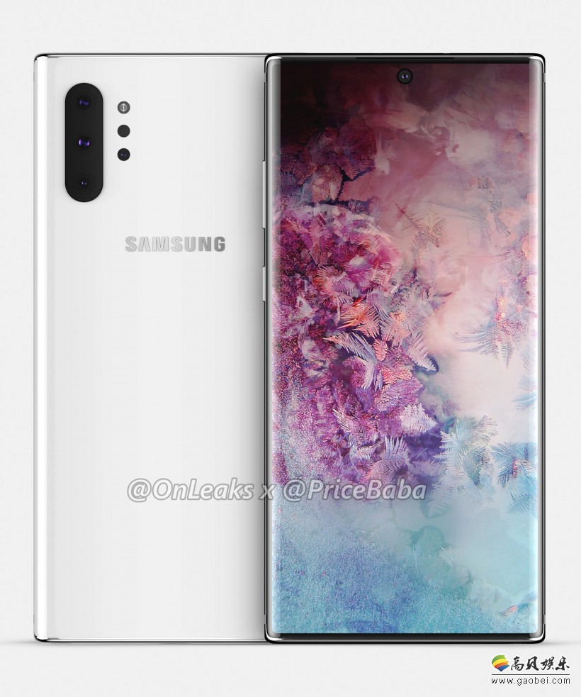Onleaks透露,三星Galaxy Note 10 Pro采用了挖孔屏方案,前置摄像头居中,这是全球首款前摄居中的挖孔屏手机(三星Galaxy Note 10也是类似设计)。