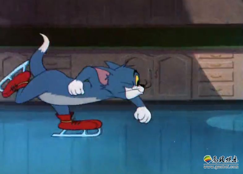 其次是汤姆的溜冰技术,在《室内溜冰场》剧集中,杰瑞和小灰鼠泰菲用电冰箱加水龙头把家里变成了溜冰场。汤姆发现之后,想要抓住两人,结果因为自己的爪子在冰上站不住,失去战斗力。然而在不小心掉落进地下室里之后,它找到了一双溜冰鞋,并且瞬间掌握了溜冰的技巧,压低身子速滑,利用冰刀急刹,都有模有样。