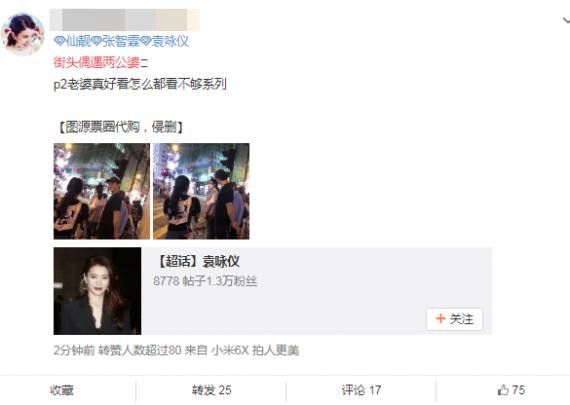 网友晒出香港街头偶遇张智霖、袁咏仪照片:张智霖一脸情深看着“靓靓”
