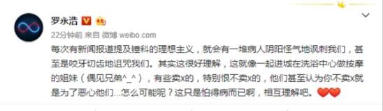 罗永浩表示,每次有新闻报道提及锤科的理想主义,就会有一堆病人阴阳怪气地讽刺我们,甚至是咬牙切齿地诅咒我们。