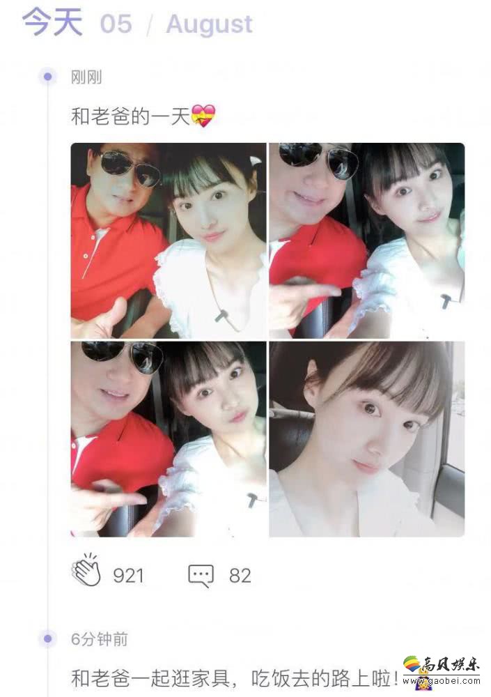 8月5日,郑爽在自己的社交平台上晒出一组和爸爸一起逛街的自拍美照。照片中郑爽身穿白色上衣,齐刘海素颜出镜显得十分清纯可爱。