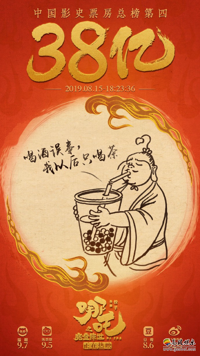 《哪吒之魔童降世》目前内地总票房已突破38亿,位列中国影史票房榜第四,前三分别为《战狼2》、《流浪地球》和《复联4:终局之战》,《哪吒之魔童降世》延长上映至9月26日,能否继续创造纪录,我们拭目以待。