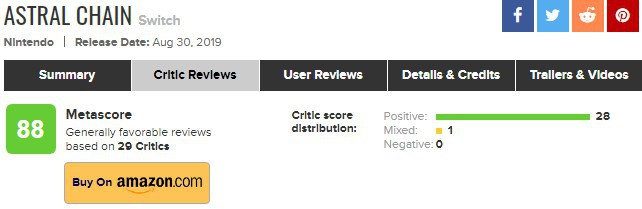 白金工作室新作《异界锁链》媒体评分现已解禁,Metacritic网站显示共有29家媒体测评,其中28篇好评,1篇中评,均分88。