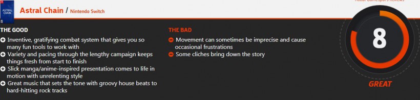 游戏拥有一个创新性、令人满意的战斗系统,其多样性和出色的节奏让游戏过程从头到尾都保持着新鲜感,流畅的漫画风格让人感到充满活力,游戏中时髦的电子乐和强劲的摇滚也非常出色,但角色动作有时不够精确会让人感到受挫,一些老套的桥段也拉低了整个故事剧情。