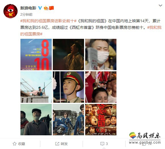 据@新浪电影,《我和我的祖国》在中国内地上映第14天,累计票房达到25.6亿,成绩超过《西虹市首富》跻身中国电影票房总榜前十。