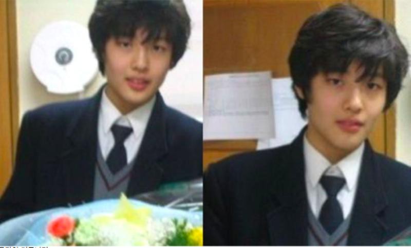 帅气学长时期,留起了韩剧中最常见的本部长发型,即使只是穿著校服也难掩帅气。