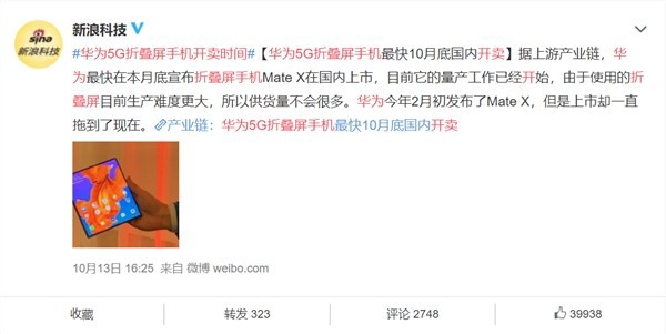 近日,“华为5G折叠屏手机开卖时间”的消息登上了微博热搜。