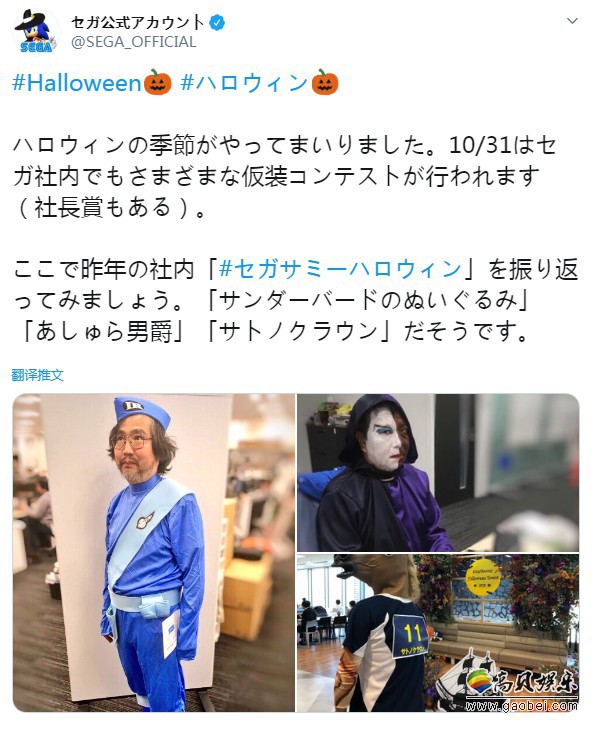 近日,世嘉官方发推,宣布10月31日将在公司内举办万圣扮装比赛,还展示了高管的扮装照片和去年参赛的一些照片。