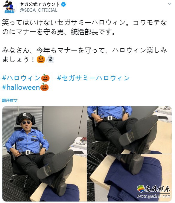 世嘉总经理搞怪扮演了粗鲁的警官,却叮嘱大家保持礼貌,享受万圣节,来看一下这位“周扒皮”的照片。