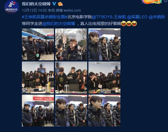 王俊凯、吴磊、关晓彤打卡“我们的太空”新媒体中心官方微博照片和视频