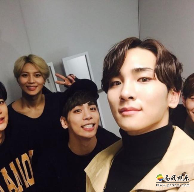 虽然没有配上文字,但包括SHINee五人的合照、与钟铉的单独合照、工作人员的大合照,每张都少不了钟铉,透露出满满的思念。