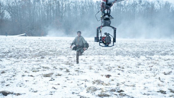 跟随这些剧照,身临其境地体验到摄像头和演员们在拍摄场地的情况。幽深的林地、皑皑的白雪场景都非常棒,演员们也相当投入。