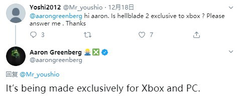 最近,Xbox游戏市场运营高管Aaron Greenberg在一则推特回复中确认由忍者理论(Ninja Theory)制作的游戏《地狱之刃2》(Senua's Saga: Hellblade 2)将做为PC与Xbox平台的独占游戏发售。