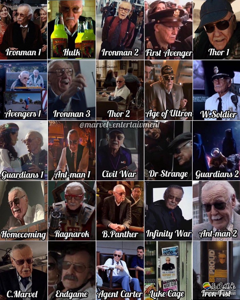 尽管斯坦李没有直接参与打造MCU,但斯坦李客串了所有MCU电影,甚至包括DC作品,还客串了大量动画、漫画、娱乐作品。在评论中有网友分享了老人家参演电影的截图合集,也算是对他的一种怀念吧。