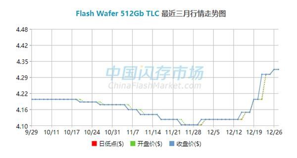从闪存价格来看,11月底到现在的12月底价格涨势最为明显,从闪存市场的报价来看,512Gb TLC闪存在11月底不过4.10美元,现在已经达到了4.32美元,涨幅大约5%。
