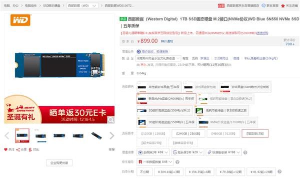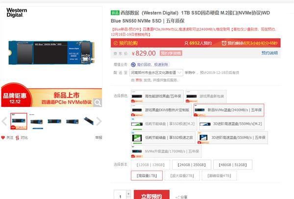 12月11日,我们报道了西数蓝盘SN550硬盘上市的消息,250GB、500GB、1TB分别售价299、469、829元。