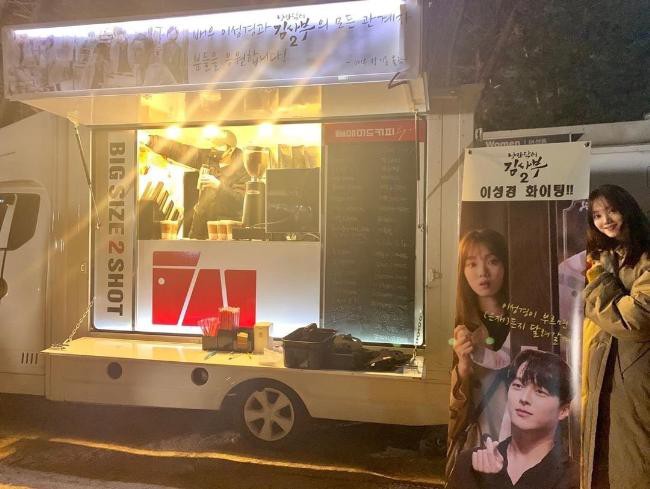 近日,张基龙为正在拍摄《浪漫医生金师傅2》的李圣经送上应援咖啡车。
