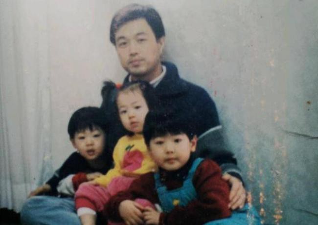 雪莉小时候和哥哥以及爸爸的合影