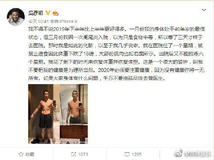 2019年的最后一天,吴彦祖就晒出了自己生病前后的对比照,来向大家说明健康的重要性。