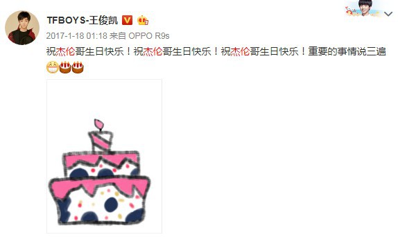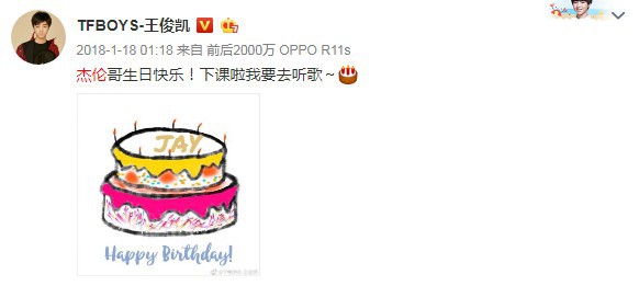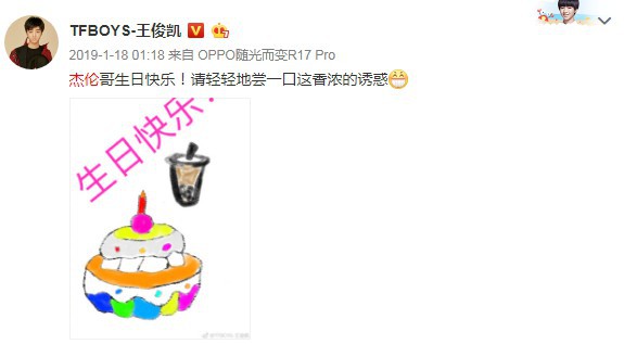 有趣的是,作为一位不折不扣的“迷弟”,王俊凯不仅连续多年在微博上为周杰伦庆生,在最近四年,他甚至在1月18日凌晨1点18分“掐点”送出祝福,非常有心。