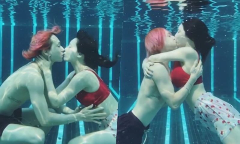 近日泫雅、Dawn和友人一同在泰国曼谷旅行,接连更新了不少照片和影片。 其中一则影片里,泫雅和Dawn在下榻酒店的泳池水下拥吻,画面还做了慢动作处理,看起来好浪漫又甜蜜。