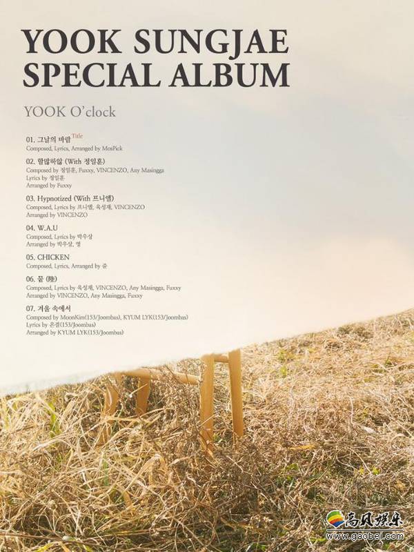 CUBE Entertainment 今天(19 日)傍晚公开了陆星材首张个人特别专辑〈YOOK O’clock〉的完整曲目表,揭晓七首歌曲的创作资讯。