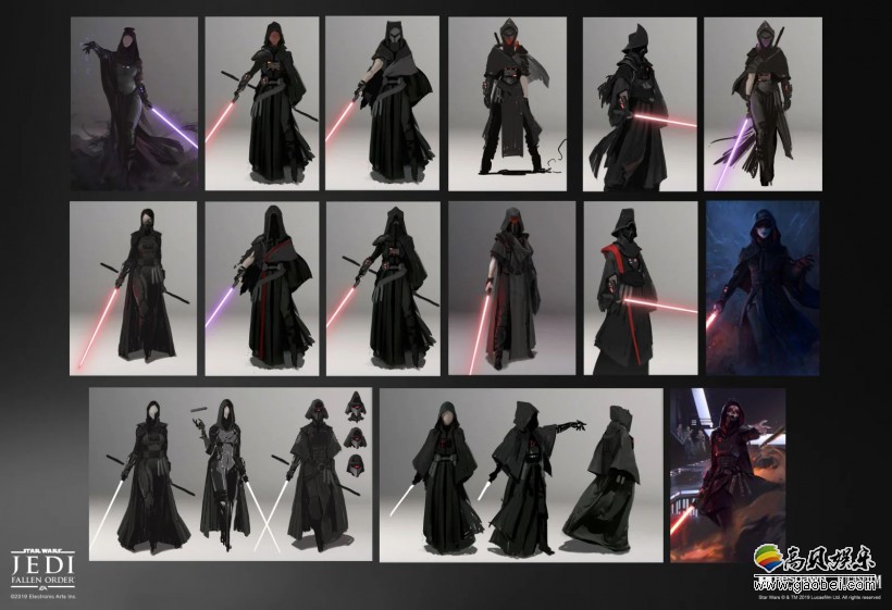 Kotaku整理了一些《星球大战绝地:陨落的武士团》的美术工作者分享的概念图、角色设定以及武器设定图。虽然这并不是游戏全部的设计稿,不过从这些美术团队出色的作品中,你依然可以感受到一些游戏制作过程中想法。