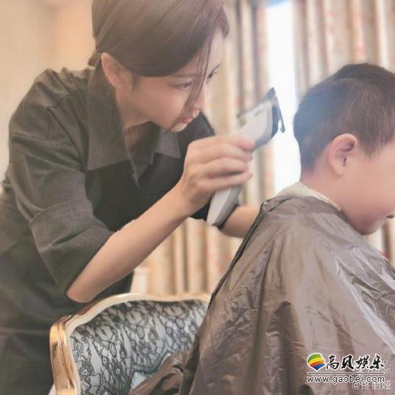 佟丽娅分享在家为儿子理发照片!拿着电动理发推为儿子理发,专业范十足