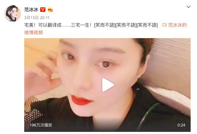 范冰冰微博晒出自拍视...