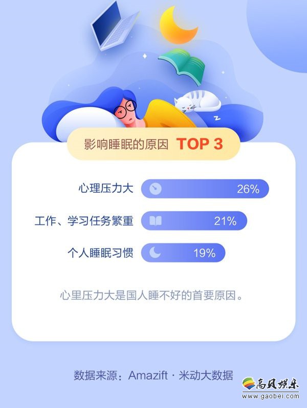 《白皮书》显示:近80%的人都比较关注自己的睡眠,心理压力大、工作学习任务重是影响睡眠的两大重要因素,仅有30%的人睡醒后感觉精力满满,大多数人在睡醒后都有一些不适,38%的人睡醒后仍然觉得很累,43%的人用手机来消磨睡前时光,90%以上的人白天有补充睡眠的需求,睡个好觉对当代人来说可太难了!