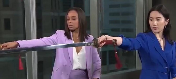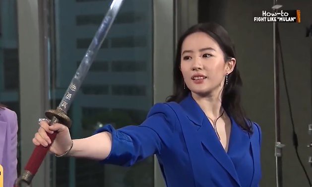 近日,刘亦菲在国外节目《今夜娱乐》中教主持人做最基本的剑术动作“剑花”,示范动作干脆利落,又美又飒。
