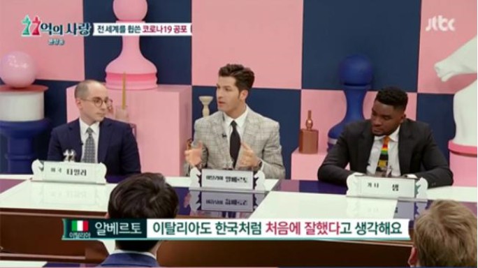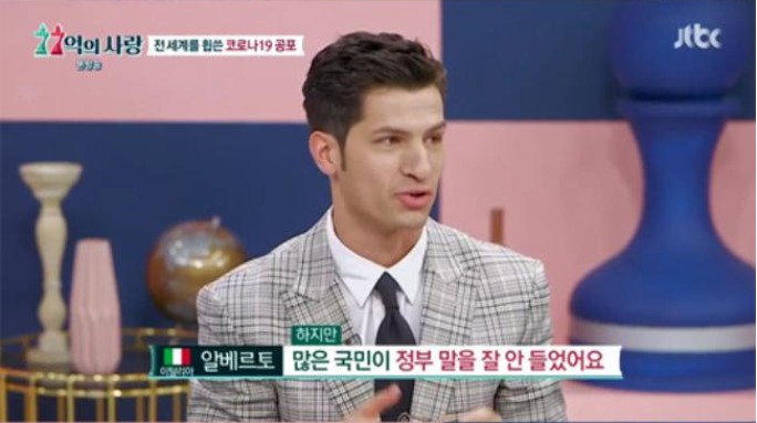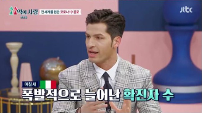 《非首脑会谈》意大利成员阿尔贝托·蒙迪24日,参加了JTBC综艺节目《77亿的爱情》,对于新冠病毒他表示:“意大利现在在全世界的死亡率最高,死亡人数也最多。”