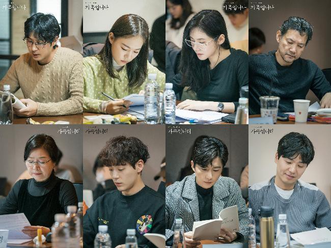 tvN日前公开新月火剧《(虽然不了解)但我们是家人》剧本练习现场照,演员群除了主演的金知硕、韩艺璃及秋瓷炫外,还包括郑进永、元美京、辛载夏、申东旭、金太勋等人。