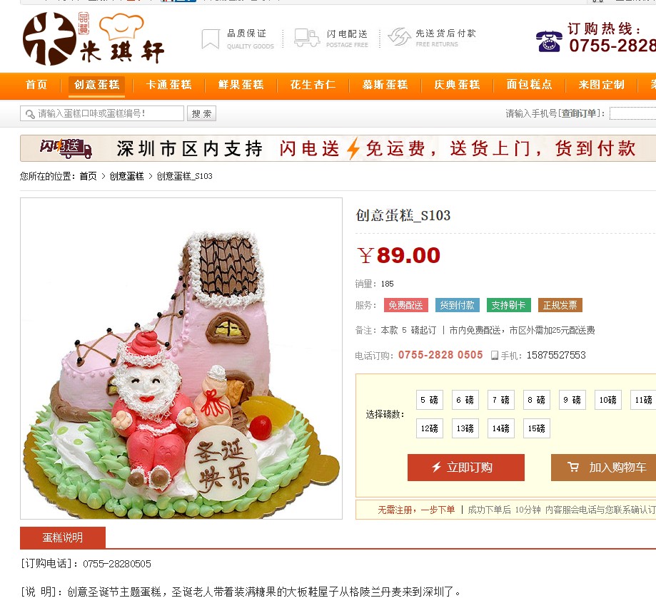 深圳数字技术园圣诞节蛋糕订购H012