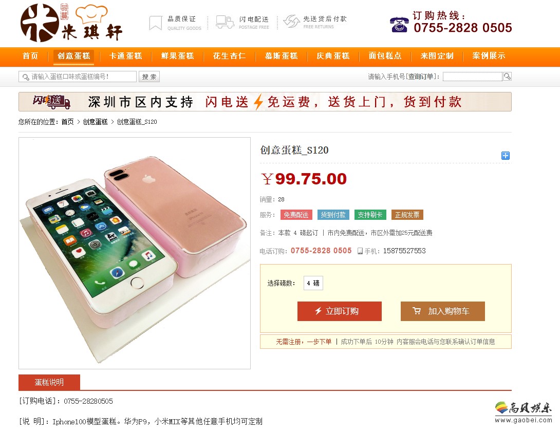 南山区苹果手机蛋糕